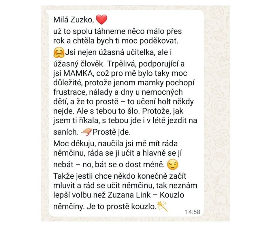 Naše denodenní komunikace na WhatsApp v němčině je jedním ze zásadních pomocníků k vašemu rychlému pokroku.